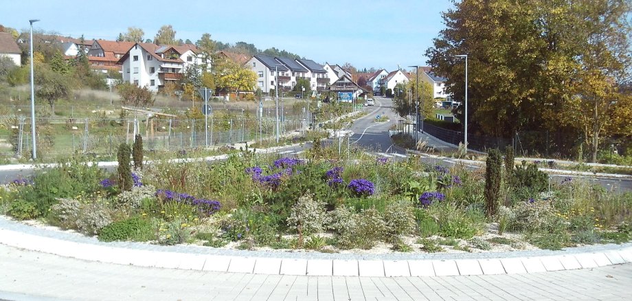 Nun ist auch an diesem Projekt der Haken dran. Schon innerhalb weniger Monate haben sich der neue Kreisverkehr und die Baumbeete an der Hauptstraße wie geplant zu grünen und blühenden Inseln entwickelt – obwohl zusätzlich noch Tausende Blumenzwiebeln erst im Laufe dieses Herbstes gesetzt werden.