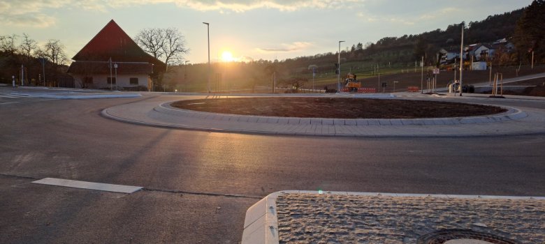 Auch im Abendlicht macht der neue Kreisverkehr eine gute Figur: (Foto: Markus Fels)