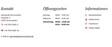 Informationen zur Barrierefreiheit, dem Datenschutz, ein Formular „Fehlermelder“ und das Kontaktformular über die E-Mail-Adresse „gemeinde@simmozheim.de“.